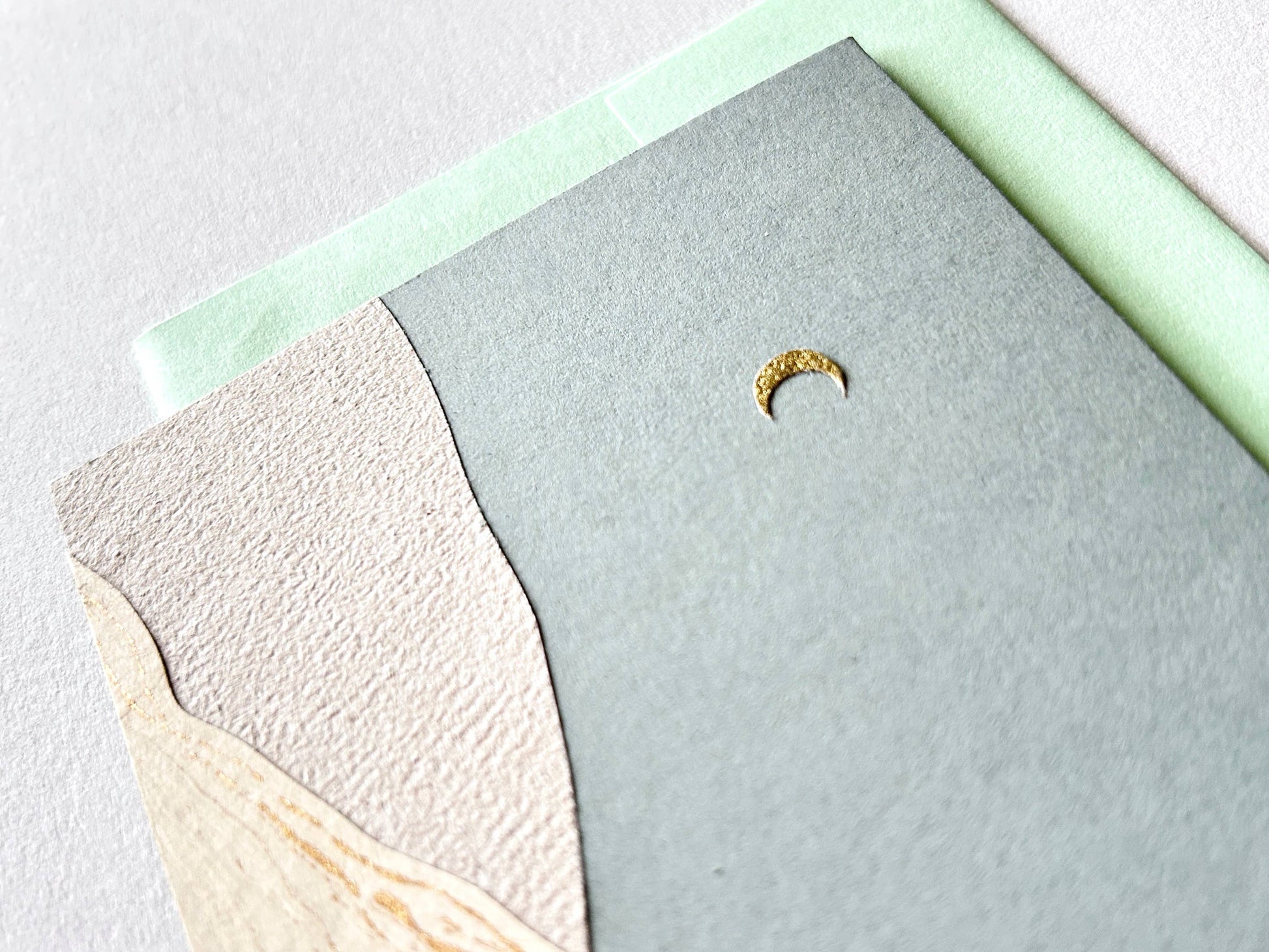 These A1 cards measures 3.5 x 5 in. and come with corresponding envelopes. These cards have been created with handmade paper, and in some cases, have hand-printed moons, each one will be unique and imperfect. Some pieces have a deckle or torn edge.